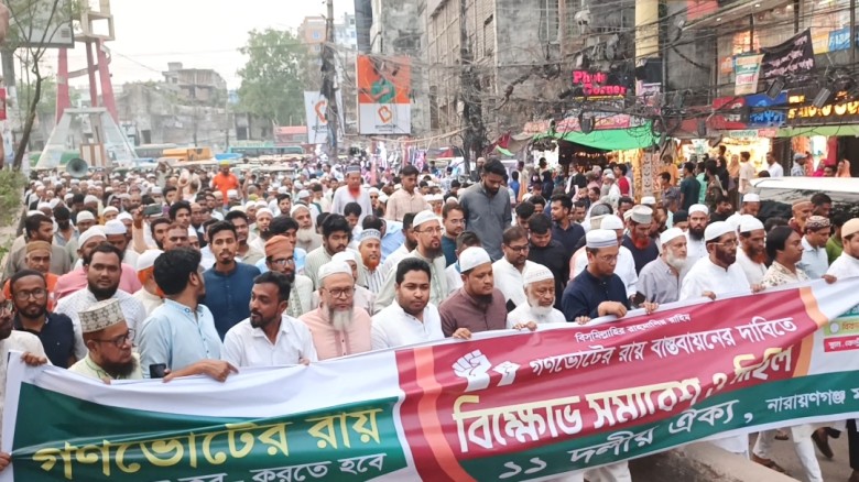 সমাবেশে নারায়ণগঞ্জ মহানগর জামায়াতে ইসলামীর আমীর মাওলানা আবদুল জব্বার বলেন, জনগণের দেওয়া রায়কে সম্মান জানানো প্রয়োজন। তিনি অভিযোগ করেন, গণভোটের ফলাফলকে ভিন্নভাবে উপস্থাপনের চেষ্টা করা হচ্ছে। এমন পরিস্থিতি অব্যাহত থাকলে আন্দোলন গড়ে তোলা হবে বলেও তিনি সতর্ক করেন।